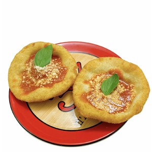 2 pezzi. Frittelle con salsa al pomodoro, Parmigiano Reggiano DOP e basilico fresco