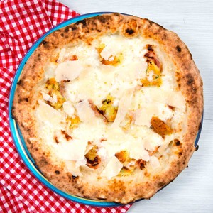 Fior di latte, gorgonzola DOP, pecorino romano DOP, scaglie di Parmigiano DOP, olio EVO