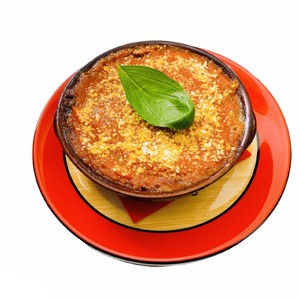 pomodoro, mozzarella, melanzane fritte, parmigiano e basilico